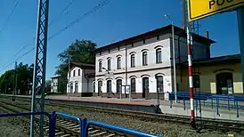 Cтанция в селе построена под названием Гербы (нем. Herby) в 1892 году, когда эта территория была в составе Германской империи, вблизи границы Российской империи. Сначала это была конечная станция на железнодорожной линии, идущей от станции Люблинец.