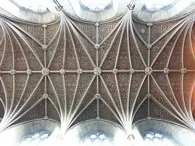 В первой половине XIV века была перестроена центральная башня, украшенная характерными для декоративного стиля английской готики боллфлауэрами. В это же время выстроены капитулярная зала и её вестибюль. Томас Тревенант (англ. John Trevenant), епископ в 1389—1404 годах, перестроил южную сторону большого трансепта. К середине XV века на западном конце добавили башню, схожую с центральной столь же обильно покрытую боллфлауэрами и увечанную свинцовым шпилем. Во второй половине столетия епископами Джоном Стэнбери[прим. 6] и Эдмундом Одли[прим. 7] пристроены три капеллы на северной стороне пресвитерия и южной стороне капеллы Девы соответственно. Позднее епископы Ричард Майо[прим. 8] и Бут[прим. 9] (англ. Booth), между 1504 и 1535 годами сделали последнюю пристройку — северный портик, ставший главным входом в церковь. Строительство собора заняло, таким образом, 440 лет.