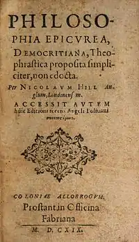 Николас Хилл (1570—1610?) — английский натурфилософ, сторонник атомизма и космологических идей Джордано Бруно. Известен как автор трактата Эпикурейская философия (1601).