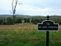В 15:00 началось наступление федерального корпуса Бернсайда, который вышел к окраинам Шарпсберга. В 15:40 Хилл завершил развёртывание своих передовых бригад. Бригады Пендера и Брокенбро были поставлены на правом фланге дивизии для предотвращения возможной атаки противника, а бригады Брэнча, Грегга и Арчера примкнули к правому флангу дивизии Дэвида Джонса. В это время федеральная дивизия Уилкокса уже опрокинула бригады Джонса и захватила артиллерийскую батарею. Бригада Арчера атаковала противника, ударив во фланг дивизии Родмана на кукурузном поле Джона Отто, известном как «Сорокоакровое кукурузное поле»[50][51].