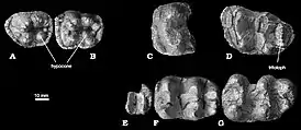 ![]() Ископаемые зубы Chilgatherium harrisi | ||||||||||||||||||||