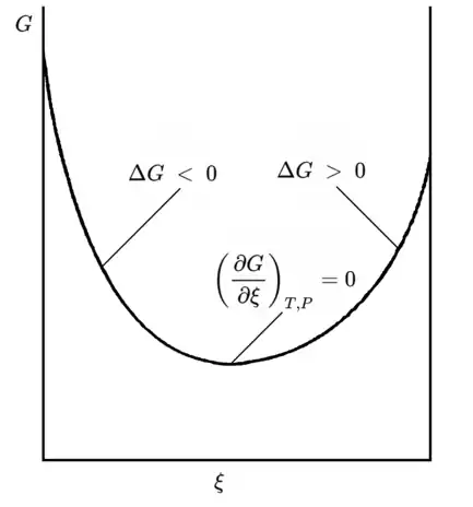 Соответственно, с использованием химической переменной, в закрытой системе (при постоянстве температуры и давления), условие химического равновесия может быть записано как
