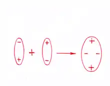 Указанное соотношение между re и d определяет неравномерность распределения электрических зарядов в молекуле — в средней части молекулы сосредоточен отрицательный электрический заряд связывающей электронной пары, а на концах молекулы — положительные электрические заряды двух атомных остовов.