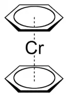 Вскоре вслед за ферроценом был получен дибензолхром (рис.9). По той же схеме получены дибензолмолибден и дибензолванадий[8]. Во всех соединениях этого класса атомы металла удерживают в едином целом два шестичленных кольца. Все 12 связей металл-углерод в этих соединениях идентичны.