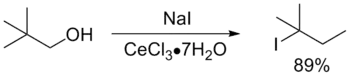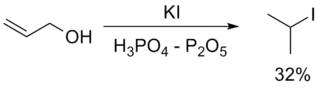 - Удобным препаративным методом замещения гидроксильной группы практически всего диапазона спиртов (включая третичные, аллильные и бензиловые спирты) на иод, является использование в качестве регента соли трифенилфосфита с метилиодидом[11]:[стр. 8].: