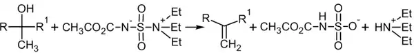 - Одним из наиболее известных прямых фторирующих агентов для первичных и вторичных спиртов является реагент Яровенко или N,N-диэтил(2-хлор-1,1,2-трифторэтил)-амин[15]:[стр. 87]: