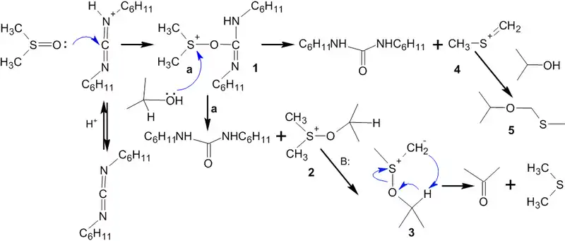 - Pfitzner K. E., Moffatt J. G. Sulfoxide-Carbodiimide Reactions. II. Scope of the Oxidation Reaction (англ.) // Journal of The Americal Chemical Society. — 1965. — Vol. 87, no. 24. — P. 5670—5678.