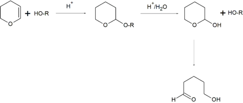 Если в реакцию с кислотой вступают двухатомные спирты, будет протекать реакция внутримолекулярной дегидратации с образованием гетероциклических соединений. Так например, 1,4-бутандиол образует тетрагидрофуран[36]: