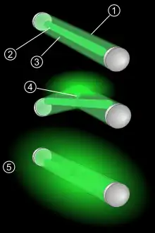 5. Компоненты смешиваются при разламывании капсулы, начинается реакция со свечением.