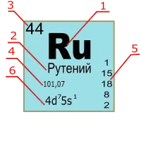 В Периодической таблице карточка химического элемента обычно включает следующие характеристики: