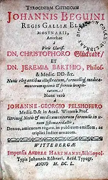 С дальнейшим развитием химии менялись представления о символике химических элементов, математической записи, используя химические формулы. Первым предложил использовать химические уравнения Жан Бегун (Jean Beguin) в 1615 году в одном из первых учебников по химии Tyrocinium Chymicum («Начала химии»)[1].