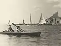 Байдарка и яхты на акватории Химкинского водохранилища. 1945 год.
