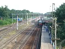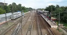 На станции одна пассажирская платформа островного типа и две боковых, обслуживающих четыре пути, одна из боковых платформ (№ 1) смещена в сторону области. Ещё одна островная платформа (бывш. № 2) разобрана в августе 2014 года. Платформы соединены подземным переходом, служащим и для перехода из одной части города в другую. В 2016 году на «северной» части (у платформы № 2) был построен павильон, оборудованный турникетами, на остальных платформах турникеты установлены в январе 2018 года.