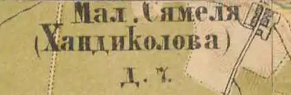 В 1885 году деревня Малая Сямеля (Хандиколова) также насчитывала 7 дворов.