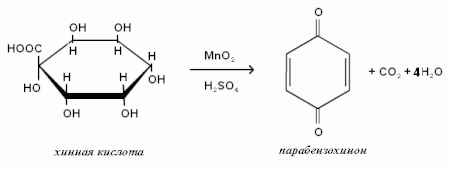 В процессе восстановления хинонов образуется окрашенный в темно-зелёный цвет промежуточный комплекс с переносом заряда — хингидрон, в котором образуется водородная и донорно-акцепторная связь: