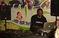 Хип-хоп как музыка и культура сформировались в 1970-х годах в Нью-Йорке в результате межкультурного обмена между афроамериканской молодёжью из США и молодыми иммигрантами и детьми иммигрантов из стран Карибского бассейна[35]. Хип-хоп-музыка в зачаточном состоянии была описана как отдушина и голос для бесправной молодёжи из маргинализированных слоёв и районов с низким доходом, поскольку хип-хоп-культура отражала социальные, экономические и политические реалии их жизни[36][37]. Многие из людей, которые помогли создать хип-хоп-культуру, в том числе DJ Kool Herc, DJ Disco Wiz, Grandmaster Flash и Afrika Bambaataa были выходцами из Латинской Америки или Карибского бассейна.