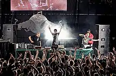 Хип-хоп, также хип-хоп-музыка (англ. hip hop music)[5][6][7] или рэп-музыка (англ. rap music)[8][9] — музыкальный жанр популярной музыки, развитый в США афроамериканцами и латиноамериканцами, живущими в бедных районах[10] Бронкса в Нью-Йорке в 1970-х годах. Хип-хоп-музыка состоит из стилизованной ритмичной музыки, которая обычно сопровождается рэпом, ритмичной и рифмованной речью, которую произносят нараспев[11]. Хип-хоп-музыка развивалась как часть хип-хоп-культуры, субкультуры, определяемой четырьмя ключевыми стилистическими элементами: эмсиинг/исполнение рэпа, диджеинг/скретчинг с помощью виниловых проигрывателей, брейк-данс и рисование граффити[12][13][14]. Другие элементы включают семплирование битов или басовых линий из записей (или синтезированных битов и звуков) и ритмичный битбокс.
