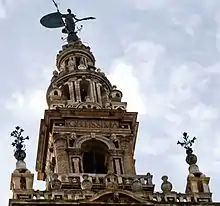 В 1568 году кордовский архитектор Эрман Руис достроил башню в стиле испанского Ренессанса[4], добавив новую квадратную в плане звонницу, увенчанную тремя последовательно уменьшающими ярусами «фонарей». Верхний заканчивается стоящей на шаре четырёхметровой бронзовой статуей Веры со знаменем в руках, которая находится на высоте 83 метра[5] и служит флюгером, по-испански, хиральдильо (отсюда название башни)[6]. Статуя была выполнена в 1568 году скульптором Бартоломе Морелем.