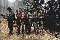 - Arnold Schwarzenegger, left, and other cast members in Predator (1987).