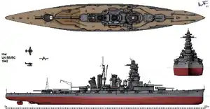 «Хиэй»[3] — заложен 4 ноября 1911 г., спущен 21 ноября 1912 г., вошёл в строй в августе 1914 г.