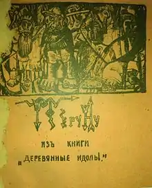1912 год ознаменовался для Хлебникова изданием первой книги. В мае в Херсоне на средства автора с рисунками Владимира Бурлюка была издана брошюра «Учитель и ученик», в которой Хлебников попытался рассказать о найденных им «законах времени», в том числе предсказал бурные российские события 1917 года, Февральскую и Октябрьскую революции: «Не сто́ит ли ждать в 1917 году падения государства?»[21]. Вскоре, в августе, в Москве была опубликована «Игра в аду», поэма, написанная в соавторстве Кручёных и Хлебниковым; в ноябре вышла ещё одна совместная работа двух поэтов «Мирсконца». Эти книги, выпускавшиеся в основанном Кручёных издательстве «ЕУЫ», были сделаны в технике литографии, причём текст на литографском камне был написан Кручёных от руки (в предисловии авторы высказывали мнение, что почерк очень влияет на восприятие текста).