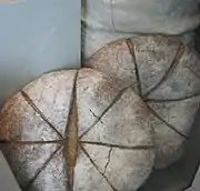- Кипрский и африканский хлеб советовали некоторые врачи, солёный каппадокийский хлеб на молоке был мягким с хрустящей корочкой, киликийские буханки — грубые. Парфянским хлебом назывался хлеб, тесто для которого сначала разбухало в воде. Испечённый парфянский хлеб (panis parthicus) имел консистенцию губки и был таким лёгким, что не тонул в воде[32], поэтому его также называли — panis aquaticus или spongia[7]:XX, 2, 16.