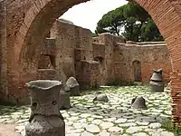Древнеримская пекарня представляла собой предприятие, соединявшее мукомольное производство с хлебопекарным. Кроме помещения, отведённого под мельницы, в пекарне находились: хлебная печь, комната, где стояли «устройство» для вымешивания теста и стол, на котором раскатывали тесто, кладовая комната, в которой хранился хлеб. Часто рядом с пекарней находилась и хлебная лавка[26]:63.
