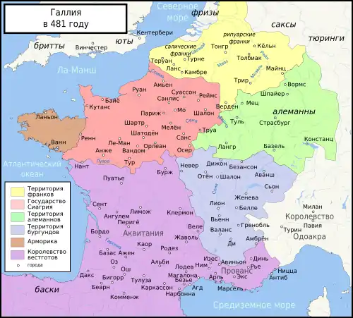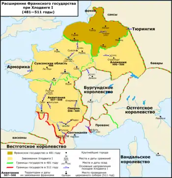 Хлодвиг I (также Кловис[1], Хлодовех[2]; около 466 — 27 ноября 511) — король франков в 481/482—511 годах из династии Меровингов. За время правления в ходе многочисленных войн существенно расширил границы Франкского государства.