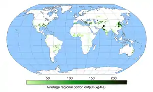 Крупнейшим экспортёром хлопка в период 2001–2005 годы являются США (чуть меньше 40 % всего экспорта), на втором месте — африканские страны «зоны франка» (9–13 %).