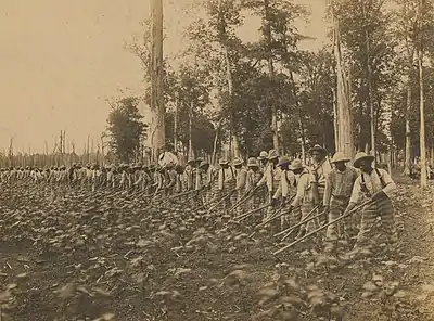 После окончания Гражданской войны и издания Прокламации об освобождении рабов хлопок продолжал оставаться главной сельскохозяйственной культурой Юга. Распространилась испольщина, когда свободные фермеры-афроамериканцы и безземельные белые фермеры работали на плантациях богачей за долю дохода. Плантации требовали большого количества рабочей силы вследствие трудоёмкости ручного процесса сбора хлопка вплоть до 1950-х годов, когда появились хлопкоуборочные комбайны. В целом, с начала XX века происходило падение уровня занятости в хлопковой промышленности в силу развития механизации. Сегодня хлопок остаётся главным экспортным товаром юга Соединённых Штатов, и большую часть ежегодного урожая хлопка составляет длинноволокнистый хлопок американских сортов[15].