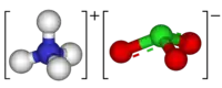 Хлорат аммония — неорганическое соединение, соль аммония и хлорноватой кислоты с формулой NH4ClO3, бесцветные кристаллы, растворяется в воде, взрывоопасен.