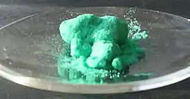 При стандартных условиях, хлорид меди(II) — голубовато-зелёные кристаллы без запаха.