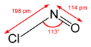 Молекула хлорида нитрозила содержит группу —NO или ион NO+, называемый нитрозилом или нитрозонием. Образование иона NO+ (потенциал ионизации 9,27 эВ) сопровождается упрочением и укорочением связи N=О. Молекула хлорида нитрозила имеет угловую форму с sp²-гибридизацией у атома N. Дипольный момент составляет 1,90 дебай.