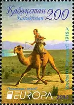 - В 2013 году "Казпочта" в серии «Европа» выпустила почтовый блок из одинаковых 10 марок с картиной Хлудова «Жасаул» (Гонец, 1916). На конкурсе Ассоциации европейских почтовых операторов марка заняла призовое третье место среди 48 участников [12].