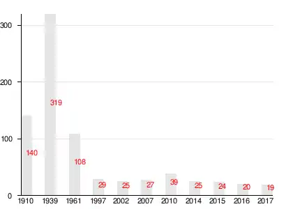 | 1910 | 1939 | 1961 | 1997 | 2007[14] | 2010[15] | 2014[16] |
