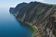 ![]() Вид с мыса Хобой на полуостров Святой Нос по ту сторону Байкала | |