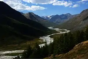Средняя ширина реки — от 80 до 140 м, глубина — от 1,5 до 3 м. Русло сильно сглажено. Несмотря на горный рельеф, в верхнем и среднем течении река практически не имеет порогов и малоинтересна для любителей экстремальных сплавов. В русле реки в верхнем течении лиственничная сухая тайга, в нижнем течении — уникальные для региона тугайные леса. На прилегающих территориях карагановые степи. Пойма местами заболочена, русло реки извилисто, имеет множество проток, нередки плёсы. На равнинных местах в нижней части течения к реке подступают песчаные степи. В таких местах в реку впадает множество ручьёв, питающихся подземными водами. В реке в изобилии водится хариус и чёрный осман.