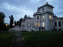 История усадьбы берет свое начало еще в XV веке, тогда ей владел сын купца Георгий Сафарлин по прозвищу Ховра (неопрятный, нечистоплотный)[24]. От этой клички и пошло название образованного здесь села Ховрино, а затем и столичного района. В XVI-XVII веках усадьба принадлежала потомкам Сафарлина из рода Третьяковых-Ховриных. Затем усадьба принадлежала представителям знаменитых дворянских родов — Шереметевым, Голицыным, Головиным, Оболенским. Парковый ансамбль построили на территории Ховрина в XVIII веке, но в 1812 году он был сожжен наполеоновскими войсками . При следующем владельце усадьбы, предпринимателе Евграфе Молчанове, был построен новый господский дом и Знаменская церковь, восстановлен утраченный парк, где также высадили новые деревья и кустарники, а также разбит дачный поселок, где Молчанов сдавал в аренду летние домики. При следующем владельце, купце Панове, господский дом снова сгорел — предположительно, его подожгли местные крестьяне из-за неприязни к Панову. В 1895 году усадьбу купила семья Грачевых. Под впечатлением от здания казино Монте-Карло в Монако, Митрофан Грачев отстроил на территории усадьбы дворец в похожем стиле — автором проекта стал знаменитый архитектор Лев Кекушев. Здесь побывало много представителей интеллигенции тех лет — Петр Чайковский, Алексей Толстой, Владимир Гиляровский, Кирилл Лемох, Валерий Брюсов[25]. После революции 1917 года здание усадьбы передали Петровской сельскохозяйственной академии (будущей Московской сельскохозяйственной академии имени К. А. Тимирязева), затем здесь размещались туберкулезный диспансер, госпиталь для тяжелораненых во время Великой Отечественной войны и Московская областная физиотерапевтическая больница, которая располагается в здании и по сей день под именем Клинический центр восстановительной медицины и реабилитации[26]. В советское время часть усадебного парка была вырублена, а протекающая здесь река Лихоборка была помещена в коллектор — сегодня о реке напоминает лишь подпитываемый ею маленький пруд в северной части парка.