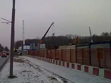 Конец октября 2017 года: начато возведение павильонов станции на улице Дыбенко.