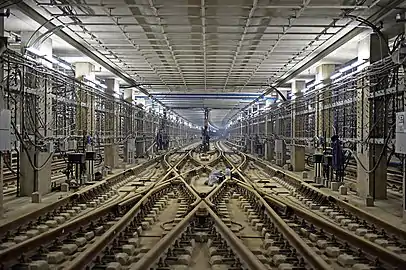 За станцией построен перекрёстный съезд и шестистрелочные оборотные тупики[6].