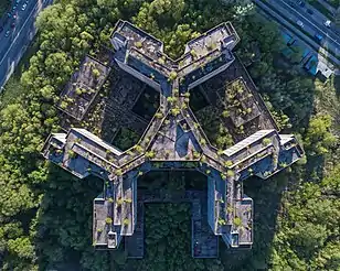 Из-за формы, напоминающей знак биологической опасности, здание получило прозвище «Амбрелла» (по вымышленной корпорации из серии игр Resident Evil, часто использовавшей этот знак)[1].