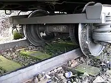 Своим узнаваемым внешним видом трамвайная тележка обязана электромагнитному рельсовому тормозу — висящей между колес над самым рельсом стальной балке.