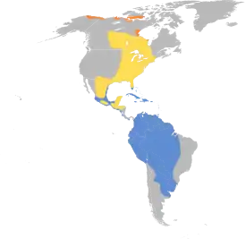 Две разрозненные популяции. Одна из них гнездится вдоль арктического побережья Северной Америки от населённого пункта Барроу (северная Аляска, район Прудо-Бэй) к востоку до острова Виктория и губы Франклин-Бэй. Вторая популяция распространена вдоль западных берегов Гудзонова залива от района Кивалик (Нунавут) к югу до мыса Генриетты-Марии (Cape Henrietta Maria, северный Онтарио)[10][11]. Перелётный вид, осенью большая часть птиц перемещается в центральные области Южной Америки от Перу и Чили к востоку до Аргентины и южной Бразилии. В меньшем количестве зимует в южной Калифорнии, вдоль побережья Калифорнийского залива, в устье реки Рио-Гранде, южной Флориде и на островах Карибского моря[11]. Основные пути миграции лежат через центральные области континента западнее долины реки Миссисипи, там же отмечены традиционные места длительных остановок на линьку[8].