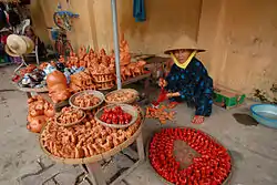 Большинство жителей Хойана формально являются буддистами, однако вьетская версия этой религии находится под сильным влиянием культа предков и других местных верований. У многих семей на домашнем алтаре есть статуя Амитабхи, многие семьи каждый лунный месяц соблюдают короткий вегетарианский пост. В то же время почти все вьеты совершают обряды в честь предков семьи (обычно у домашнего алтаря) и предков клана (в специальном семейном святилище, где поклоняются полумифическому «прародителю» и летописи клана). Небольшие семьи не имеют отдельных святилищ, как правило, они поклоняются только умершему патриарху и другим родственникам[69].
