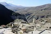 На территории комплекса находятся более сотни объектов, среди которых две боевые башни, две мечети, 17 жилых башен, сакли. Из их числа 24 объекта находятся под государственной защитой[1]. Высота боевых башен составляет 16 метров. Первые постройки комплекса датируются XII веком, последние — XIX веком. Поначалу сооружения строились без использования связующего раствора. Здания стояли за счёт тщательной подгонки камней друг к другу. В более поздних постройках начали использовать глинистный раствор[2].