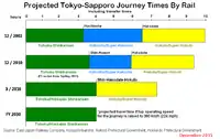 Тохоку и Хоккайдо-синкансэн рассчитывают, что будут осуществлять перевозки со скоростью до 360 км/ч. Предположительное время поездки из Токио в Саппоро объявлено как 3 ч. 57 мин.