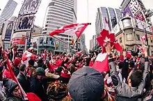 ![]() Празднование победы сборной Канады по хоккею в Торонто |