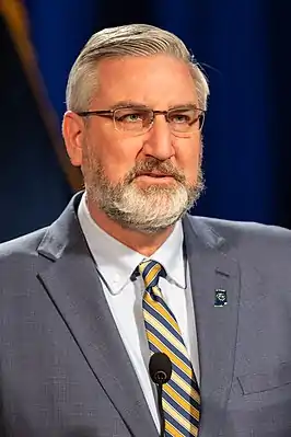 8 ноября 2016 года победил на губернаторских выборах бывшего спикера Палаты представителей Индианы демократа Джона Грегга[5].