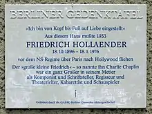Фри́дрих Хо́ллендер (нем. Friedrich Hollaender; 18 октября 1896 года, Лондон — 18 января 1976 года, Мюнхен), после эмиграции в Америку, известен как Фредерик Холлендер (англ. и нем. Frederick Hollander), был композитором немецкого ревю и звукового кино, артистом кабаре и поэтом-песенником.