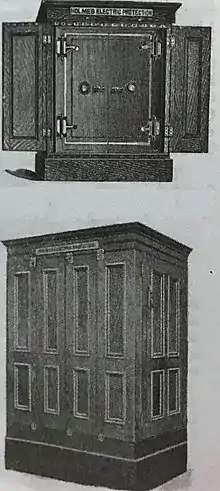 В 1870 году Эдвин Холмс и Генри Рум (Henry C. Roome) сконструировали специальную капсулу для сейфов, вскрытие которой включало сигнализацию. Как правило, каждая стенка сейфа покрывалась двумя гибкими металлическими планками, едва изолированными друг от друга бумагой, или соединенными друг с другом через катушку сопротивления. Как только взломщик касался этого покрытия, планки соприкасались друг с другом, сила тока увеличивалась, и все это регистрировалось на гальванометре. Если взломщик перерезал соединение капсулы с батареей, то и этот шаг фиксировался на гальванометре. Сигнал от капсулы мог идти на звонок внутри дома, на звонок в полицейскую часть или в офис компании Холмса.